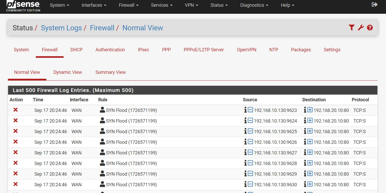 flags: S: SYN 플래그가 설정된 패킷에만 반응하도록 설정되어 있습니다.