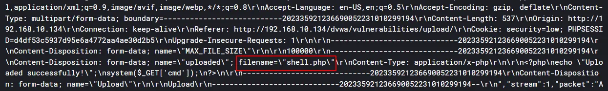content: "/dvwa/vulnerabilities/upload/" – DVWA 파일 업로드 경로 감지.