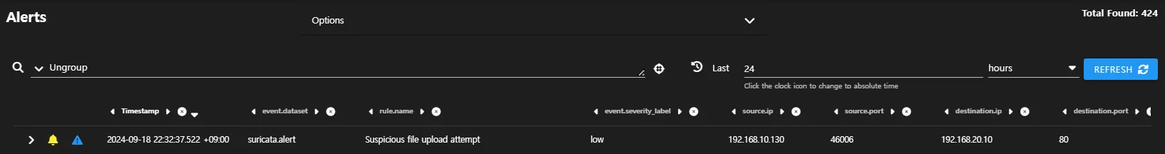 msg: "Suspicious file upload attempt" – 파일 업로드 시도를 감지하는 경고 메시지.