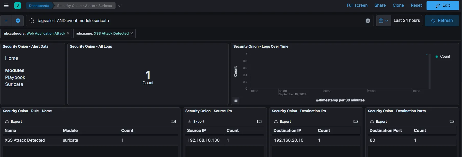 msg:"XSS Attack Detected": 탐지된 공격에 대해 "XSS Attack Detected"라는 경고 메시지를 출력합니다.