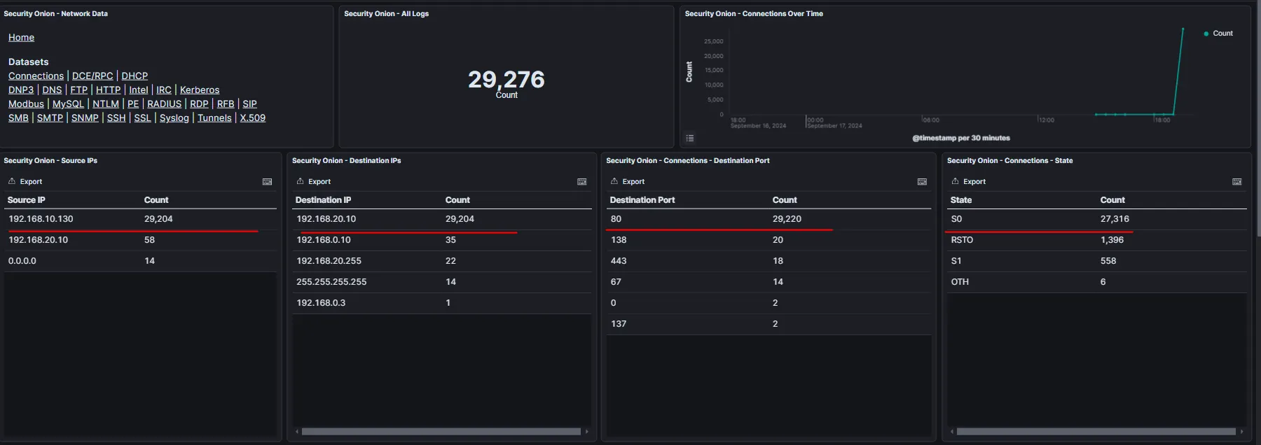 공격 지표 확인 및 경고 필터링 (Kibana&zeek)