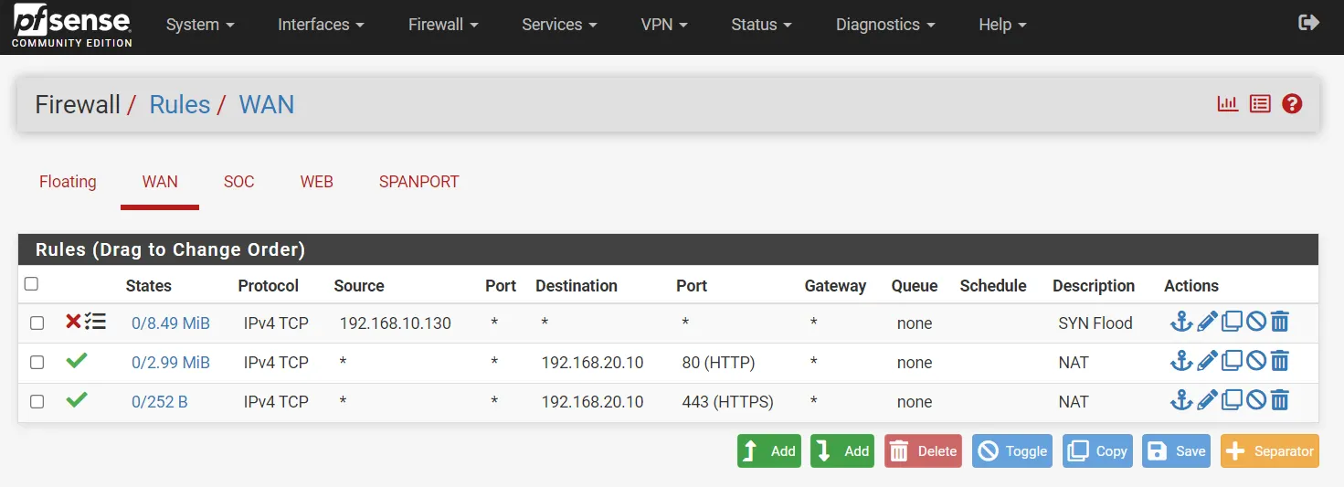 pfsense 차단 룰 설정