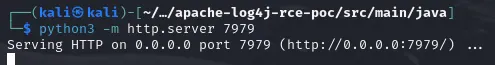 중요 LDAPRefServer 를 7979로 설정해두었다 공격파일이 있는 경로에서 파이썬으로 웹 서버를 7979 포트에 오픈하고, 마인크래프트에서 1389 포트 + 파일명을 호스팅하면 해당 파일이 실행된다