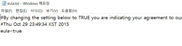 eula=true (true로 기본 설정 되어있긴 하지만 확인)