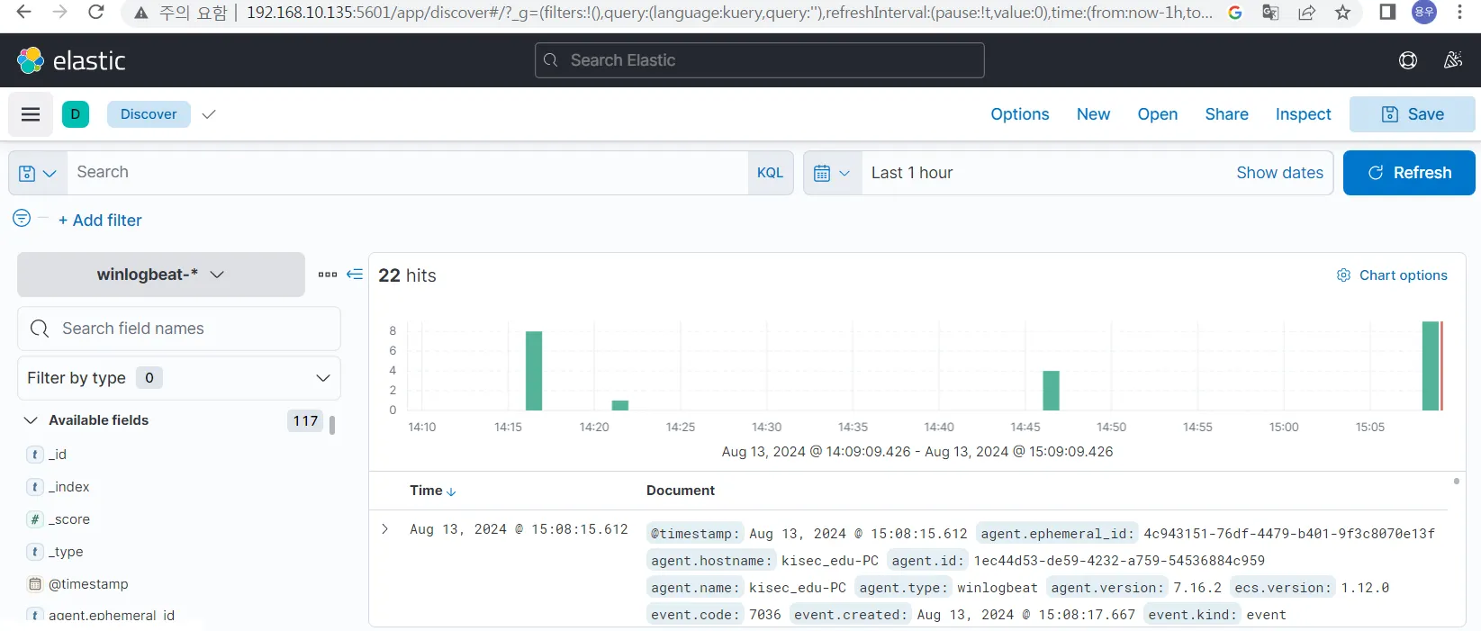 cmd 관리자 권한으로 실행, winlogbeat 가 있는 곳으로 이동