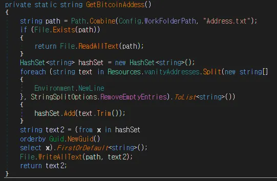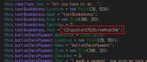 비트코인 주소가 하드코딩 되어있지만 실제 표시되는 주소랑 다름