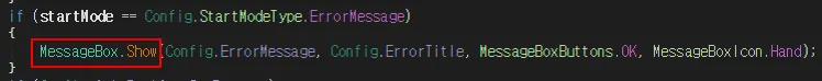 프로그램 시작 시 StartMode 는 ErrorMessage 로 설정됨을 확인