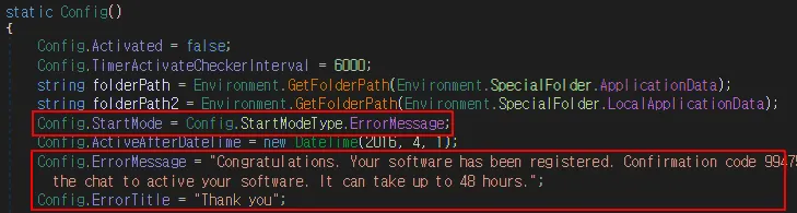 해당 랜섬웨어는 실행 시 지속성 확보를 위해 레지스트리를 수정하며 메세지 박스를 띄운다. 그리고 6초마다 파일을 암호화하고 1시간마다 파일을 삭제하며 비트코인을 입금할 시 암호화를 해제하고 본인을 삭제한다.
