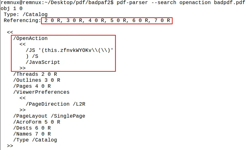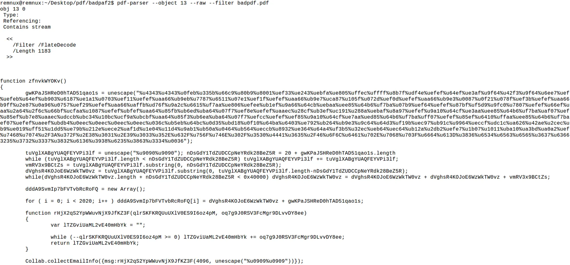 pdf-parser --object 13 --raw --filter badpdf.pdf