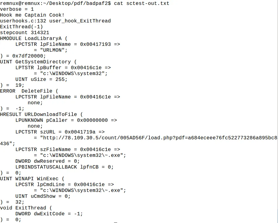 cat shellcode.raw | sctest -Svs 1000000 > sctest-out.txt