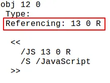 여기서는 /S /JavaScript 형태로 사용하여 앞선 코드가 JavaScript임을 명시하여 이를 구체화하고 있다.