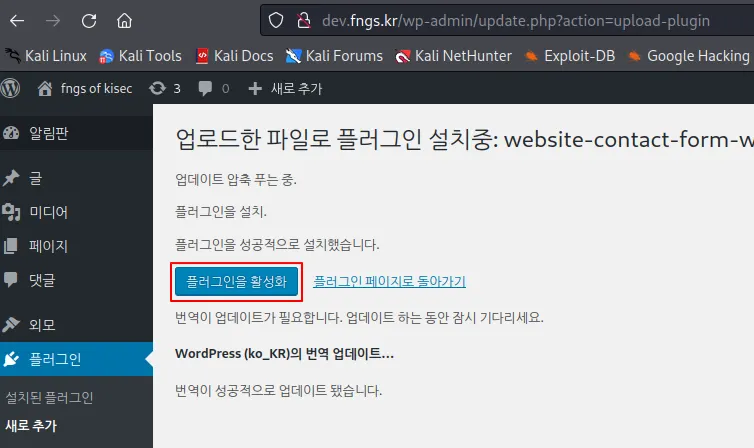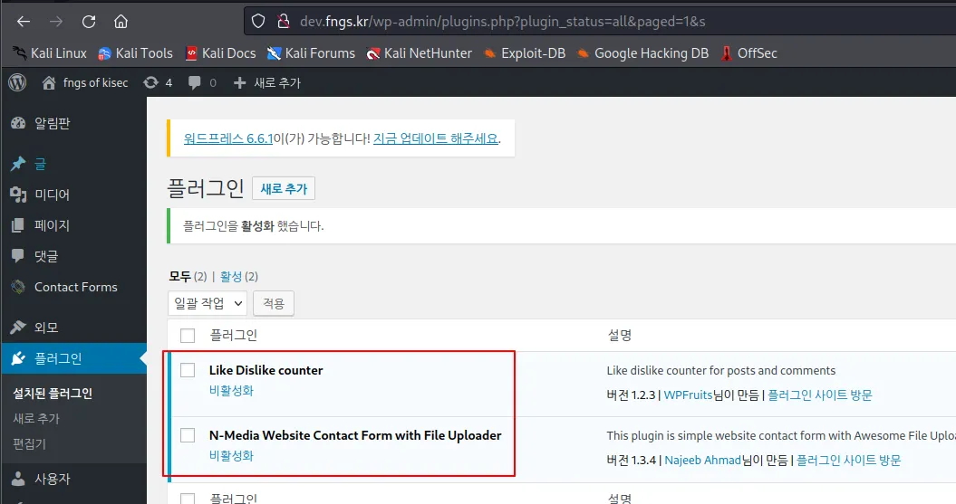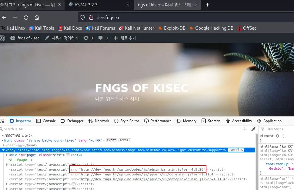 wpscan 을 사용하여 워드프레스, 플러그인의 버전을 확인하여 취약성 조사