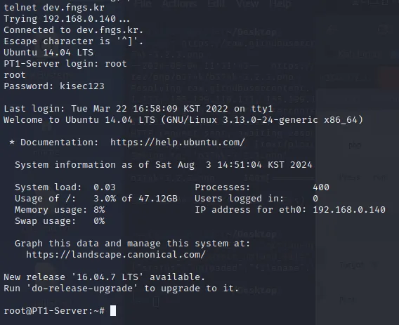피해자 Server : 192.168.0.140 B-SQLi & DirtyCow