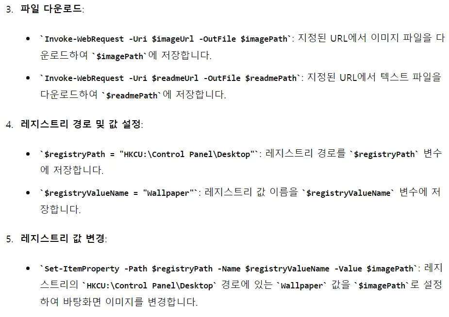# 바탕화면 설정을 변경할 레지스트리 경로와 값 이름 설정