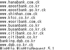 검색결과 은행들의 도메인 확인, 뱅커 유형의 악성코드인 것을 확인