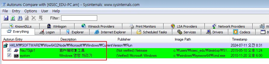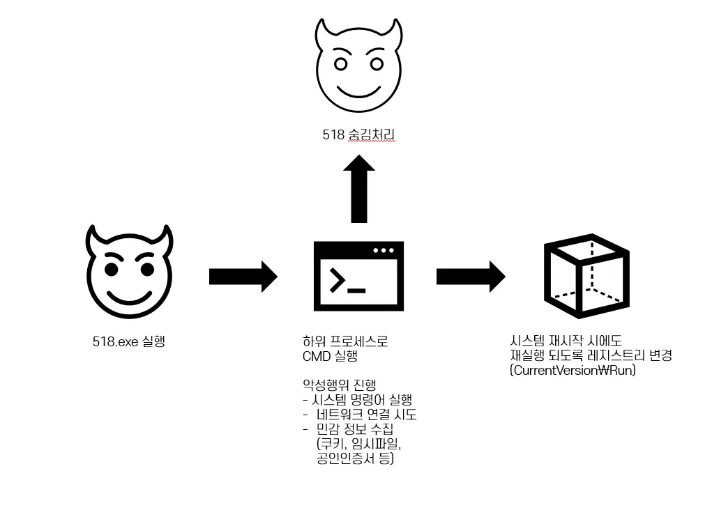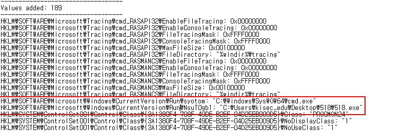 CurrentVersion\Run 아래에 cmd 와 518이 추가된 것 확인