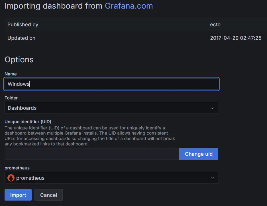 그라파나 대시보드 임포트